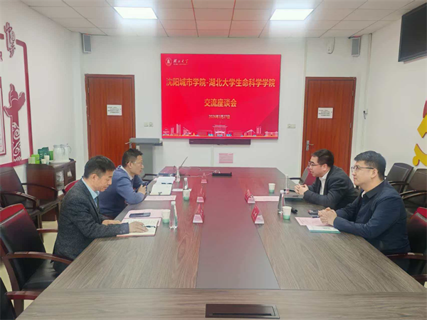 3月27日,沈阳城市学院党委副书记、常务副校长刘爽,副校长、生命健康学院院长谷硕一行赴湖北大学生命科学学院开展专题调研交流。湖北大学生命科学学院党委书记黄裕钊,副院长杨之帆、李爱涛,校团委书记陈俊及综合办公室主任杨明萱等陪同调研并参加座谈。