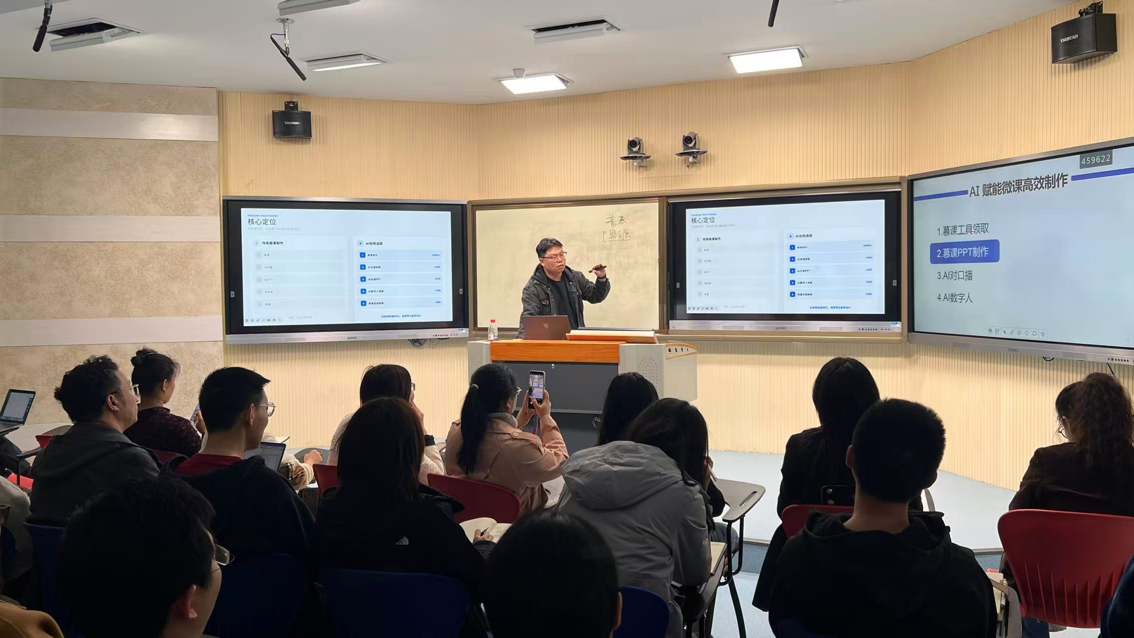 《AI赋能微课高效制作》由张康老师主讲,聚焦微课脚本设计、AI语音合成、虚拟数字人播报等关键技术,现场指导教师完成一节5分钟微课的制作全流程,为混合式教学提供丰富资源。