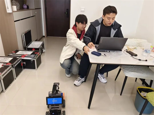 在系统调试的过程中,师生们发现,当赛场阳光强时,深度相机拍出来的画面一片白,机器人便会分不清哪里是夹取平台。为了应对比赛现场的复杂环境挑战,团队也开发了多套应对策略。2023级智能科学与技术专业潘邦顺同学说:“考虑到现场可能存在的强光干扰视觉识别,在尹竞瑶、刘盛玉等老师的指导下,我们反复打磨技术方案,从硬件调试到程序优化,从模拟演练到解决复合智能体协同控制的核心难题,每一次修改都凝聚着团队的汗水。”