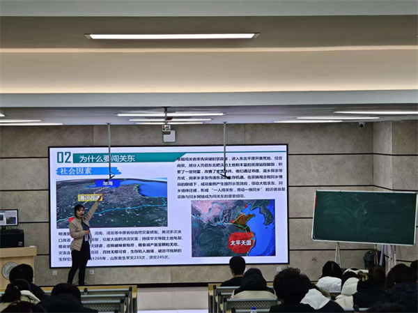 “提起闯关东,你们是否在电视剧中见过先辈们背井离乡的身影,或是听家里长辈说起过祖辈闯荡东北的往事?”智能与工程学院的冯艳丽老师以贴近生活的提问开启讲座,带领学生走进中国近代史上这场规模宏大的人口迁徙浪潮。讲座先通过互动投票引发学生共鸣,随后从 “什么是闯关东” 切入,拆解 “闯”“关”“东” 三字的深层内涵。