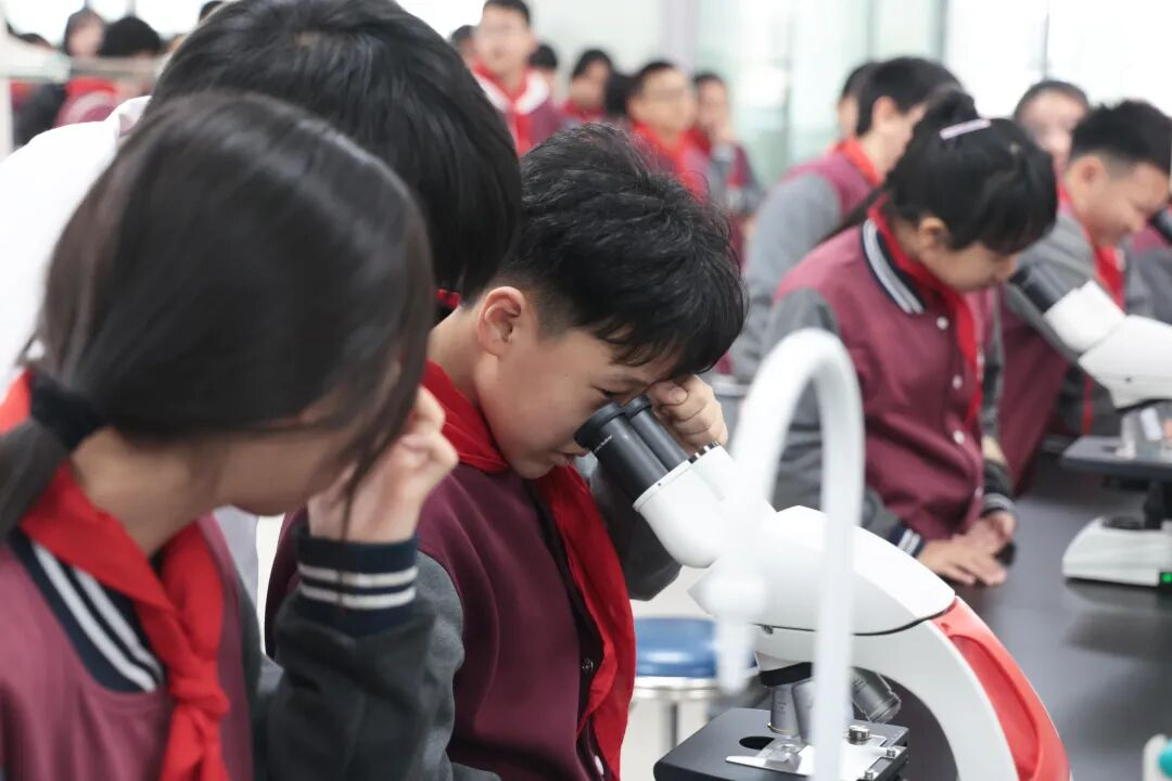 医科楼里,生命的奥秘以两种尺度向孩子们展开。显微镜实验室中,同学们将眼睛贴近目镜,看见了那个平时肉眼无法触碰的世界。四年一班的邱忠垚屏息凝神,缓缓转动焦距旋钮,当清晰的细胞结构浮现在视野里时,他说:我看清楚了!真的和书上的图片一模一样!