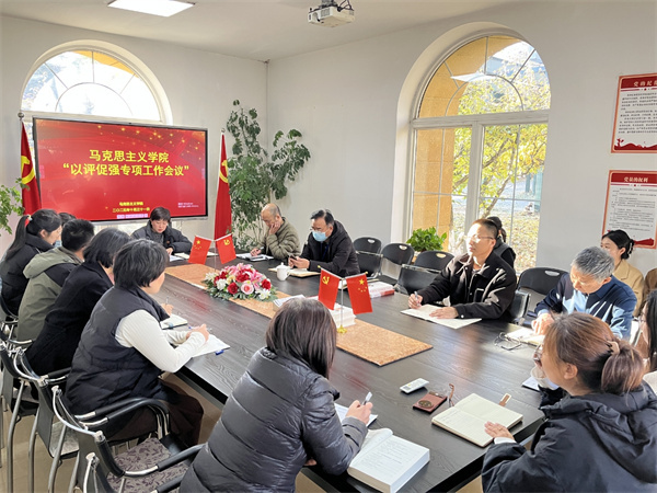 2025年10月31日,马克思主义学院在会议室召开“以评促强”专项工作会议,全面落实学校“以评促强”专项工作部署,总结评估工作、剖析现存问题、明确整改方向。会议由副院长廉瑛主持,马克思主义学院全体教师参会。
