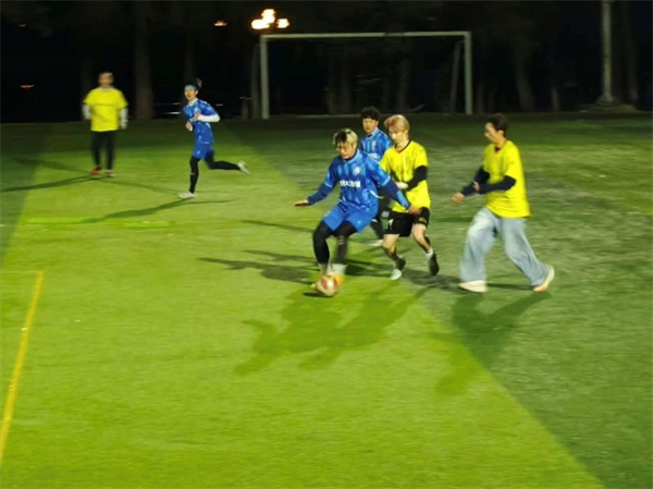 智能与工程学院自赛事筹备阶段便全力支持球队建设。通过院内选拔发掘足球人才,组建起一支凝聚力强、斗志昂扬的参赛队伍。备赛期间,队员们主动利用课余时间投入训练,无论是基础动作打磨,还是战术配合演练,每一个环节都全情投入。