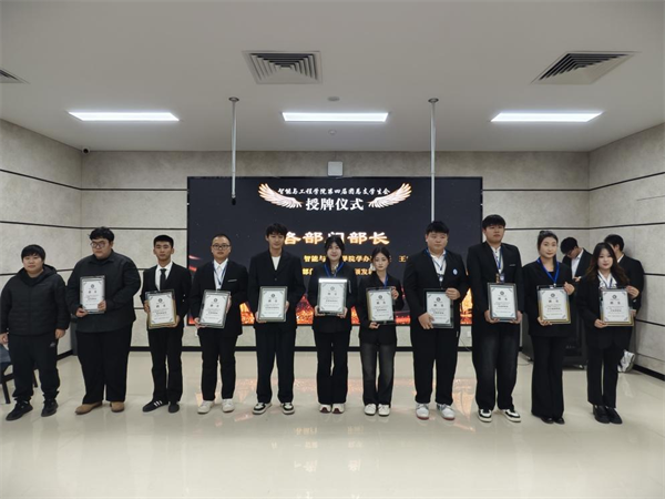 近日,智能与工程学院第四届团总支学生会授牌仪式在医工楼隆重举行。此次仪式标志着新一届学生会成员正式接过服务校园的接力棒,为学院学生会工作开启全新篇章,也为校园文化建设注入青春动能。