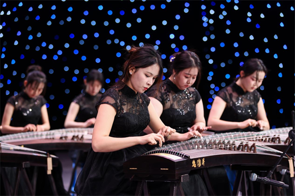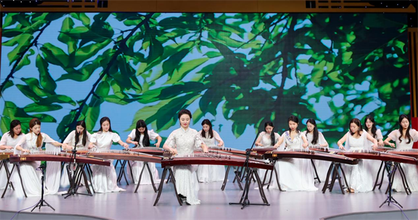 音乐会共16首重奏作品,从经典改编到原创新作,以多元风格诠释古筝艺术的表现力。《战台风》由我校教师董江华指导,作品中急促扫弦与错落节奏交织,复刻台风来袭时的激荡汹涌,奏响劳动人民的无畏气魄。《玉盘》(琴瑟古筝艺术团),指导教师霍妍,作品以苍劲高亢的弦音配衬打击乐的沉雄顿挫,尽显翻越天险的豪迈风骨。《柳京之舞》(“若然”筝团,沈阳师范大学戏剧艺术学院),指导教师李秋莳、王培蓉,作品以灵动跳脱的节奏配衬打击乐的鲜明韵律,尽显异域舞蹈的鲜活绮丽。