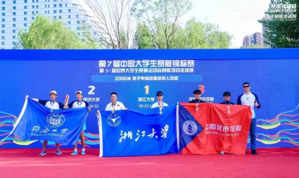 沈阳城市学院赛艇队首次出战国家级大学生体育赛事,冲进前三,获得历史性突破!5月12-14日,第七届中国大学生赛艇锦标赛暨第31届世界大学生夏季运动会赛艇项目选拔赛、第四届沈阳国际青少年赛艇邀请赛在“中国最美城市静水赛道”浑河启航逐浪。沈阳城市学院孔祥辉、孙坤能获得男子轻量级双人双桨季军,汪卫获得男子甲组单人双桨第四名,苏家霖、孔文龙获得男子甲组双人双桨第四名,苏家霖、孔文龙、孔祥辉、孙坤能获得男子四人艇第五名。