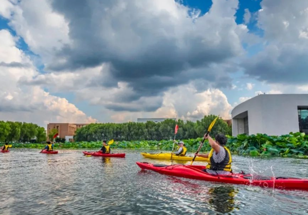 伴着蓝天白云,闻着荷叶清香,学校水上运动俱乐部高水平队员在绿岛湖上往来飞驰、劈波斩浪的训练场面,成为校园一道亮丽的风景线。皮划艇与赛艇虽有不同,但都是时尚又充满历史与文化的运动,自由、优雅、平衡、动感、和谐,是皮划艇和赛艇运动的特色。皮划艇俱乐部是由水上运动俱乐部高水平队员组成,成立皮划艇俱乐部既丰富了学校体育课程,又展示了学校“爱好体育、崇尚艺术、关心时事、追求时尚”的校园文化。