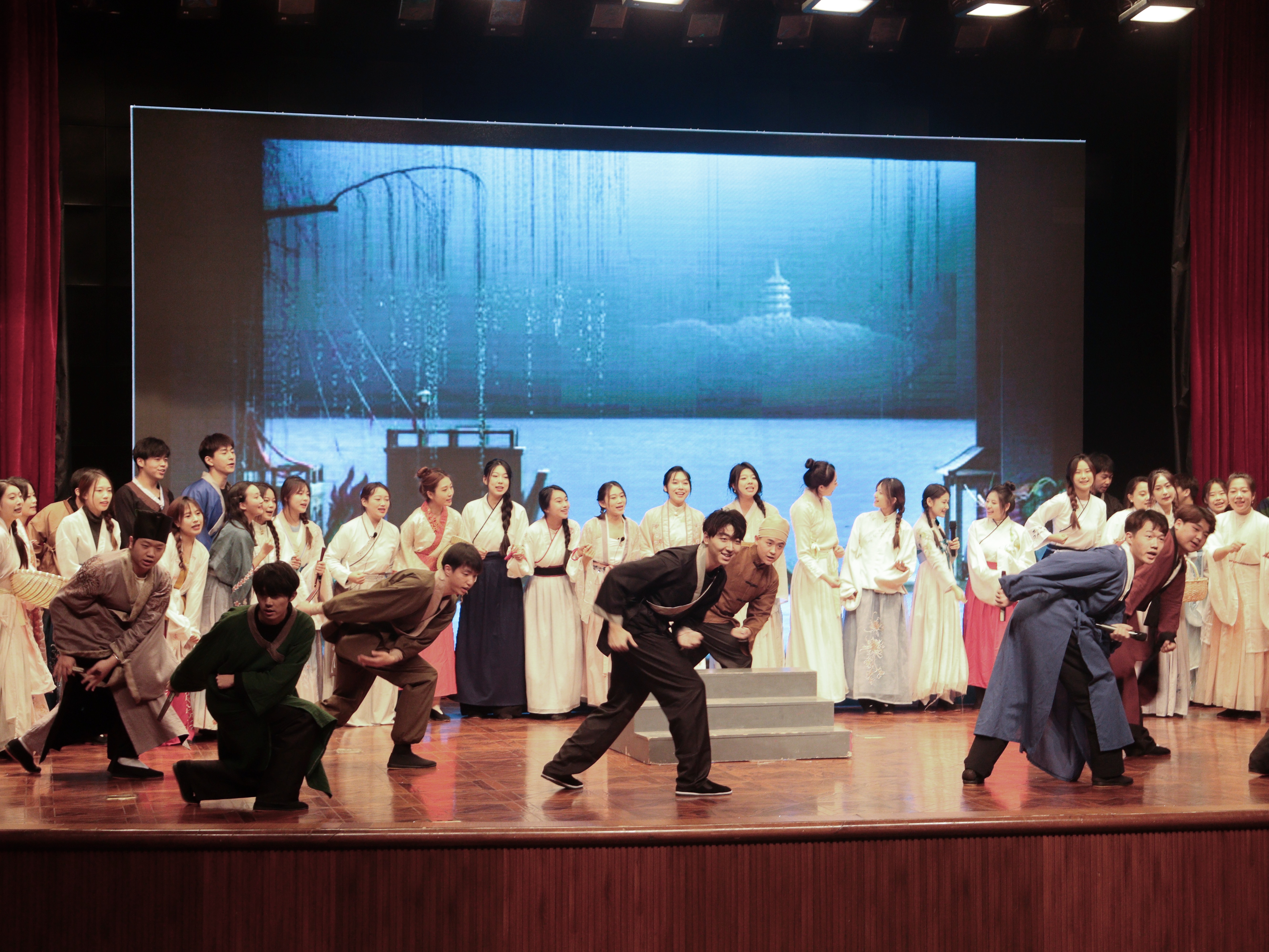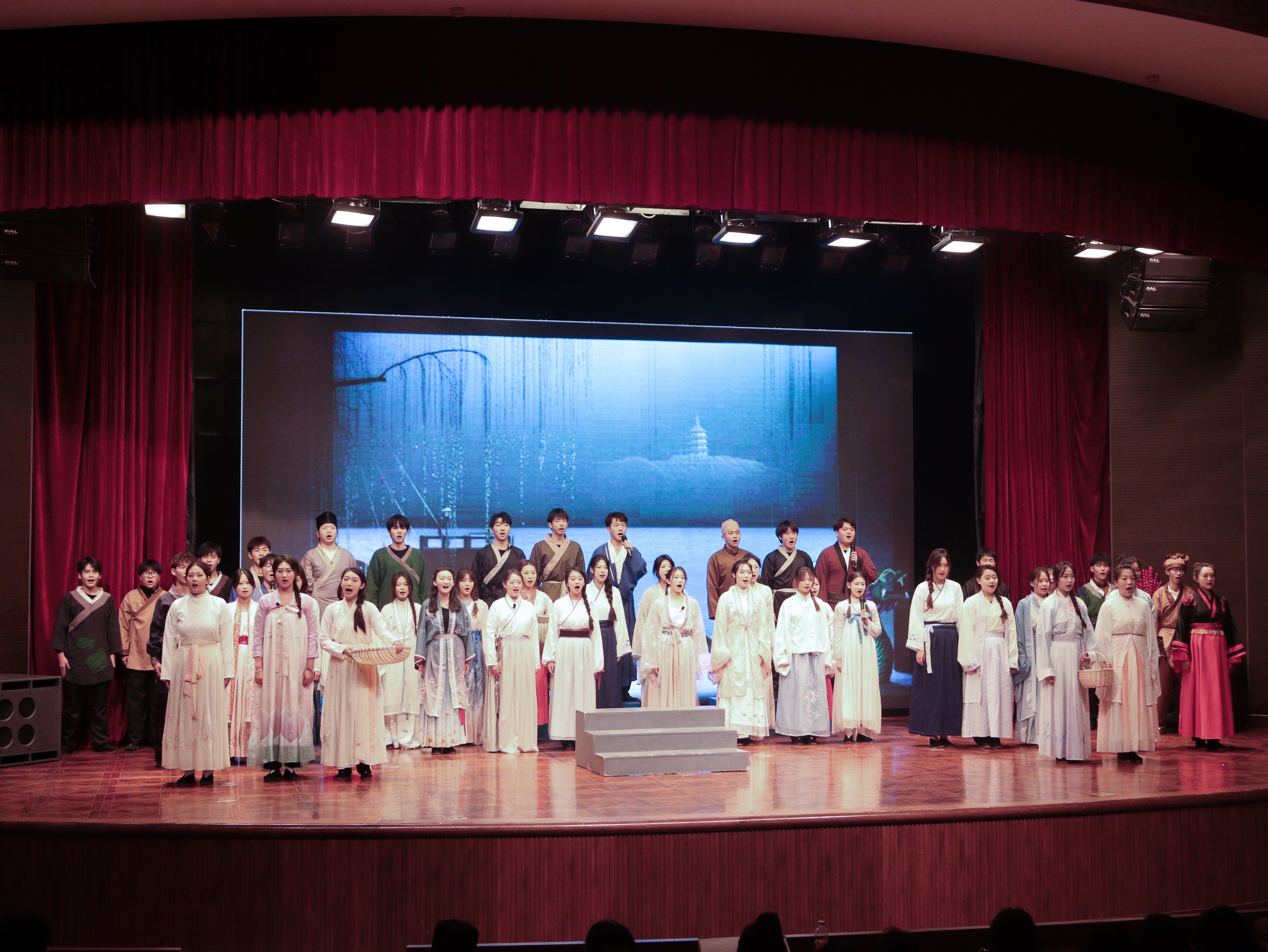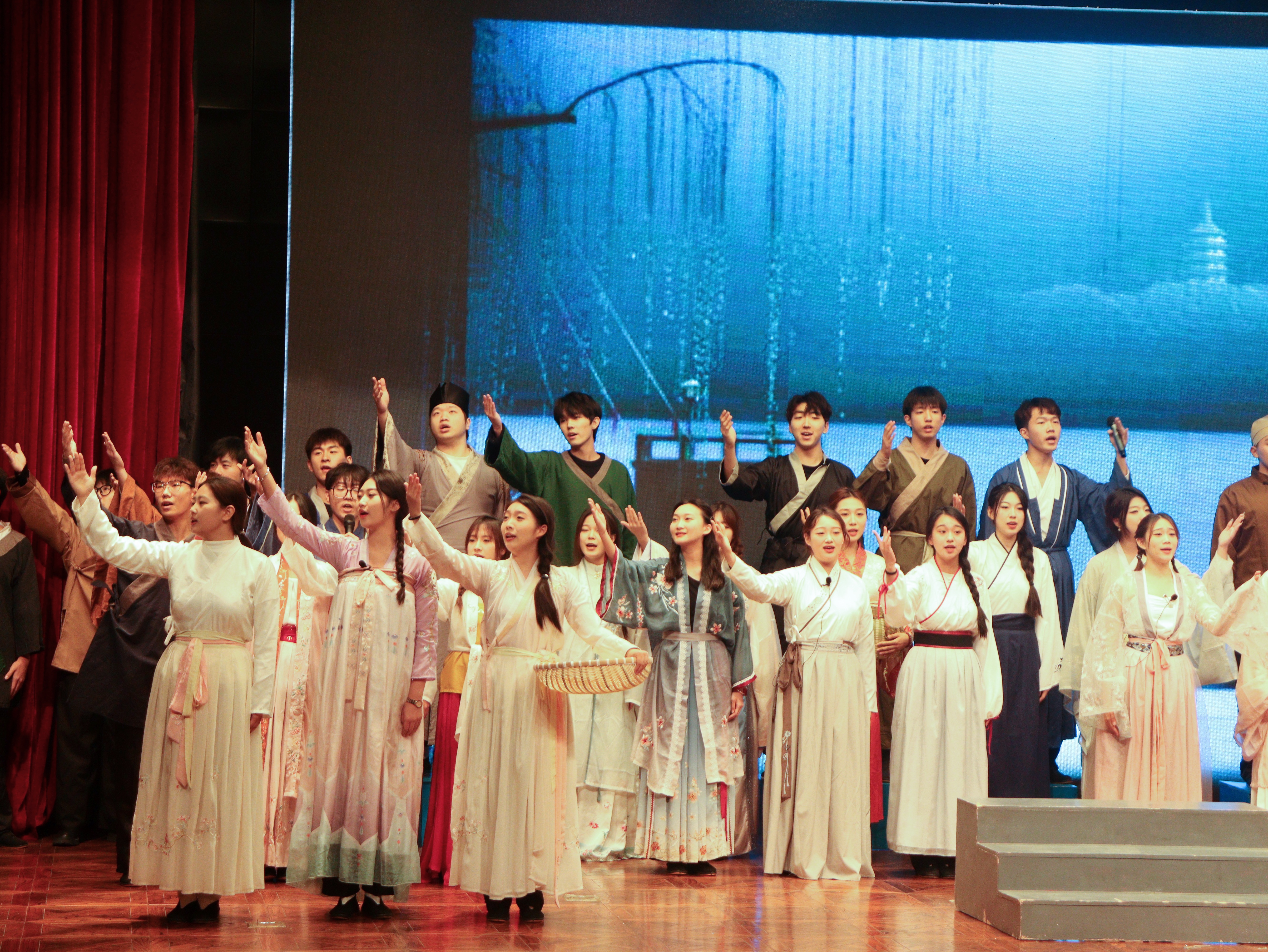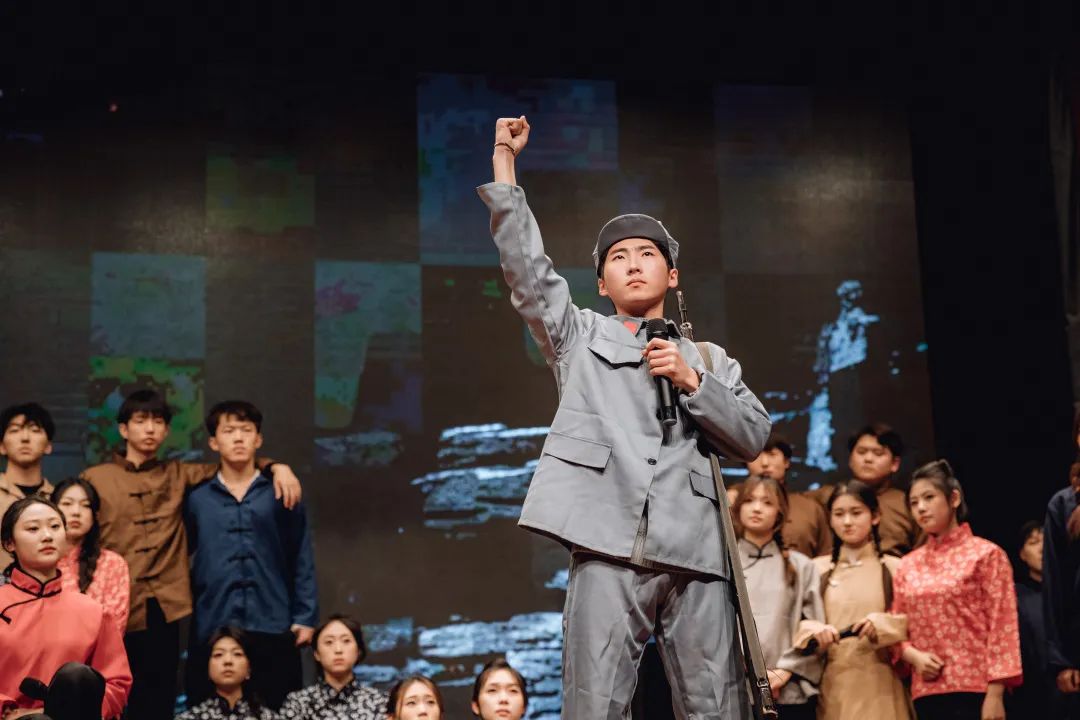 参与演出的同学们,不仅在演唱技巧、歌词处理上下足了功夫,还在肢体、语言、表情上都有着非常细致的表现,舞台布置和同学们的服装造型也还原了当时的情景。整段戏连贯流畅,人物形象鲜活生动,给观众留下了深刻印象。