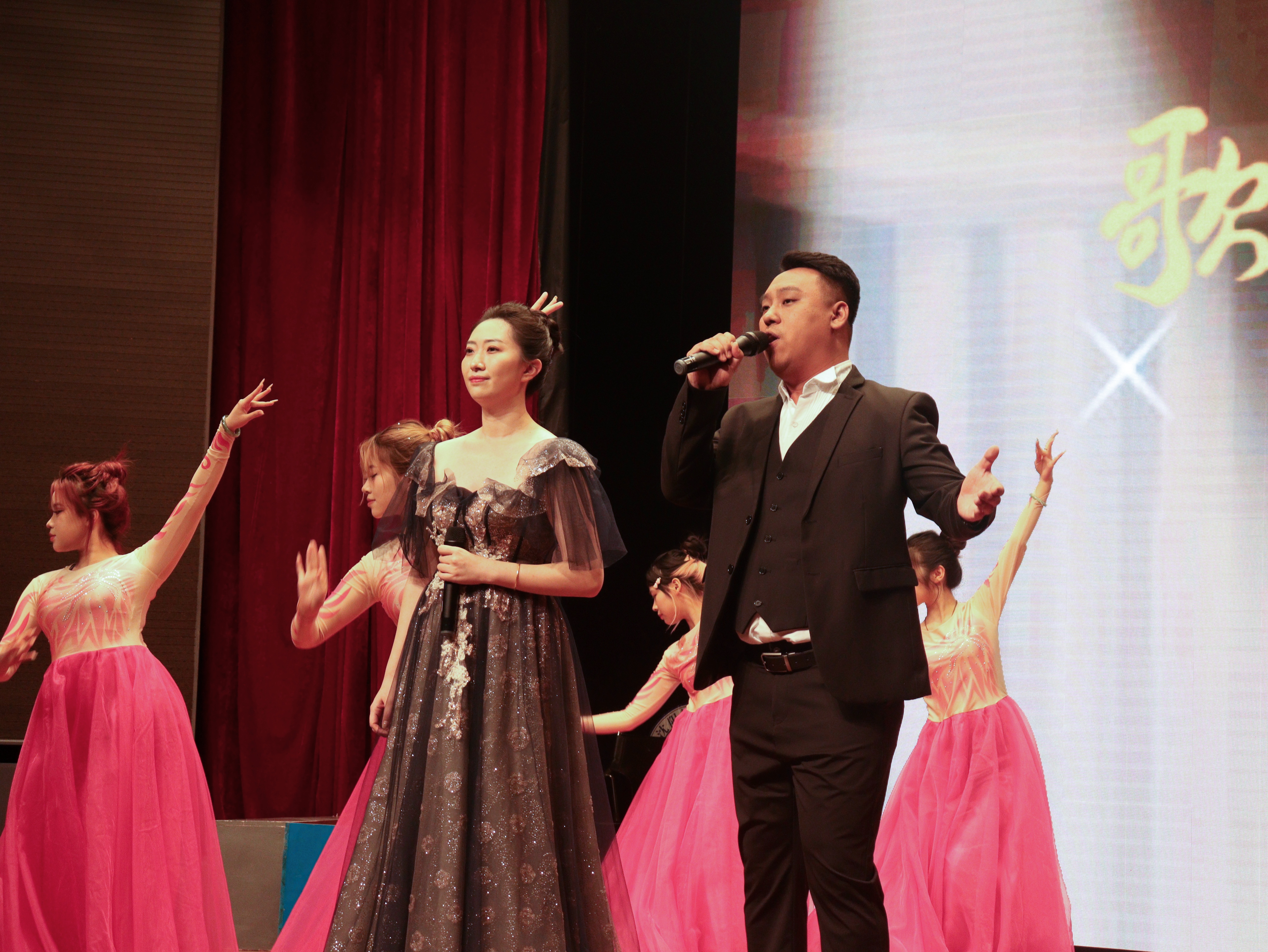 在演出现场,歌剧艺术团指导教师曹庆贺和张美珠为现场观众演唱了《恭祝中国梦 》。