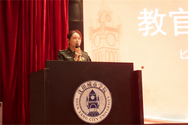 军训的圆满完成,离不开教官的辛勤付出与辅导员的悉心陪伴。匕首操方队教官梁嘉宝作为教官代表发言,她首先肯定了全体新生在军训中的成长与进步,回顾了与同学们共同训练的点点滴滴。她表示,看到同学们从青涩走向成熟,从松散走向团结,感到十分欣慰,同时也希望同学们能将军训中养成的优良作风保持下去,在未来的人生道路上勇毅前行。
