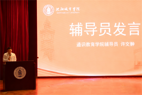 随后,通识教育学院辅导员许文翀作为辅导员代表发言。他始终陪伴在同学们身边,见证了大家在军训中的每一次进步与蜕变。他叮嘱同学们,军训虽然结束,但大学旅程才刚刚开始,要将军训中锤炼出的坚韧不拔、团结协作、严守纪律的精神,融入今后的学习和生活中,不辜负青春,不辜负梦想。