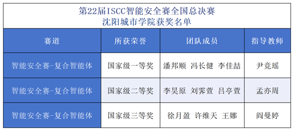 在刚刚落幕的2025年第22届ISCC智能安全赛全国总决赛中,沈阳城市学院机器人工程中心派出的三支多模态机器人团队在“智能安全赛-复合智能体”赛道中,分别斩获国赛一等奖、二等奖、三等奖,实现了“全等级奖项”的突破,创下参赛最好成绩。