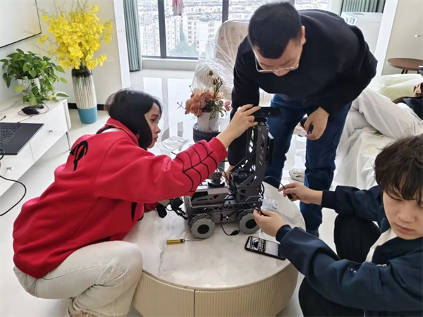 李昊原同学说:“备赛的两个月里,我们曾因复杂场景下的技术瓶颈陷入困境,也曾在深夜的实验室反复调试程序到疲惫不堪,但是孟亦周、刘盛玉等老师一直鼓励我们,手把手指导我们优化智能控制逻辑的场景,最终打造出兼具稳定性与创新性的参赛作品。”