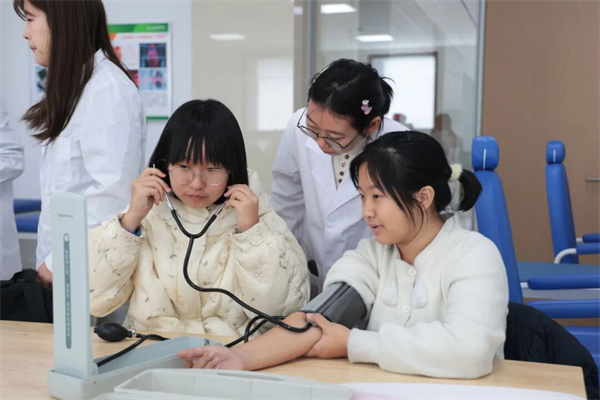 电生理实验室里,徐佳笛刚刚完成了血压测量的实践课程。“两种不同的测量方法各有优劣。老式血压计需要手动充气,用听诊器仔细捕捉柯氏音,整个过程比较繁琐,但测量结果很精准。新式的电子血压计就方便多了,一键操作就能自动显示数值,特别智能便捷。” 通过这次实践,徐佳笛不仅掌握了血压测量的技能,更体会到了医疗设备发展过程中“便捷性”与“精确性”的平衡之道。这样的亲身体验,让她对医学检测技术有了更立体的认识。