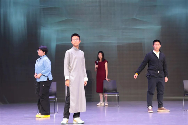 没有想到的是,两个小时后,《回望曹禺》的小演员们竟然全程脱稿,一气呵成地完成了整段表演。这也惊呆了负责指导孟德尚同学的2023级表演专业高宏鹏,“弟弟妹妹们第一次表演就能这么投入和自如,确实很厉害。经过短暂的调整后,能够完整地完成演出,真的很难得,领悟力特别强!”