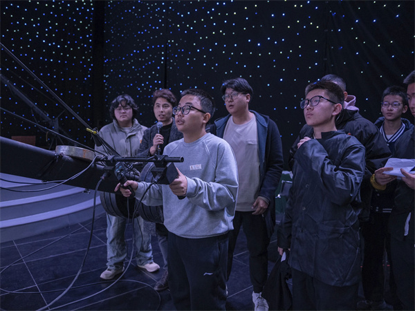 “原来这个摇臂是这么操作的,我说那些瞬间拉近的高镜头是怎么实现的呢!”在绿岛传媒中心的演播大厅,同学们瞬间被眼前这个“大家伙”吸引住了,虽然它的重量让学生们操作起来有点难,但看懂了它的操作原理之后,还是解开了同学们心中的大疑问。