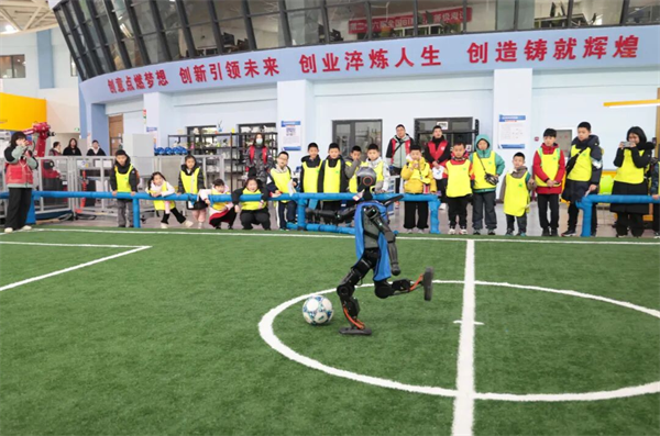 机器人一段动感的开场舞后,孩子们主动上前互动聊天,更组队与机器人展开了一场别开生面的足球对抗赛。在欢笑与竞技中,人工智能不再遥远。