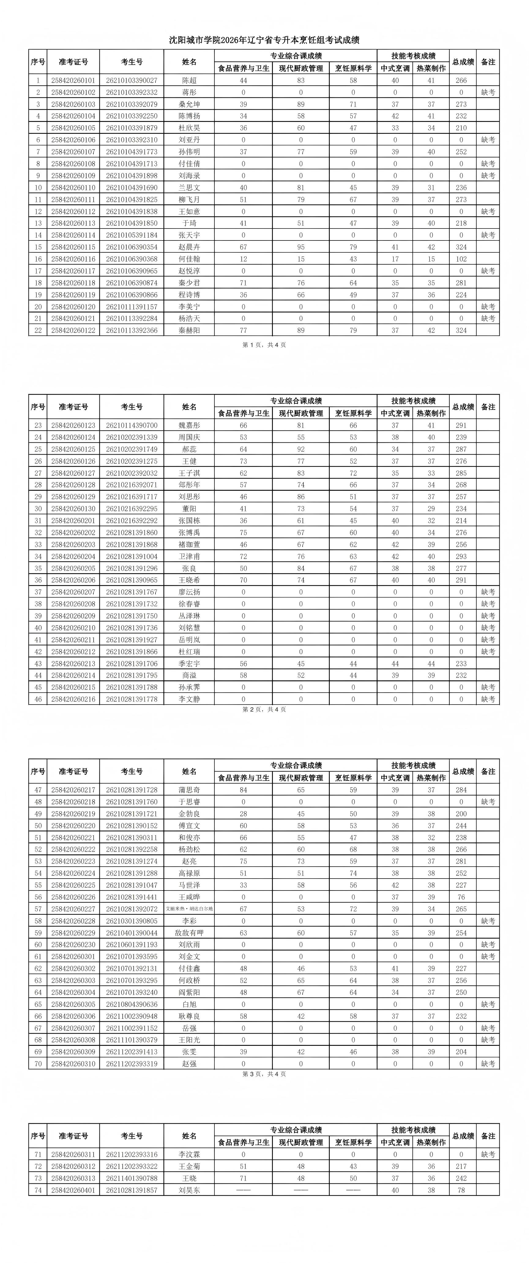 1. 沈阳城市学院2026年辽宁省专升本烹饪组考试成绩