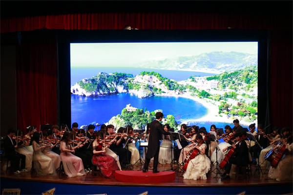 最后,西洋管弦乐团与合唱团的同学们共同合奏了校歌《我行我能》。这首曲目以激昂的旋律和励志的歌词,展现了乐团师生们共同追求梦想、勇往直前的精神风貌。