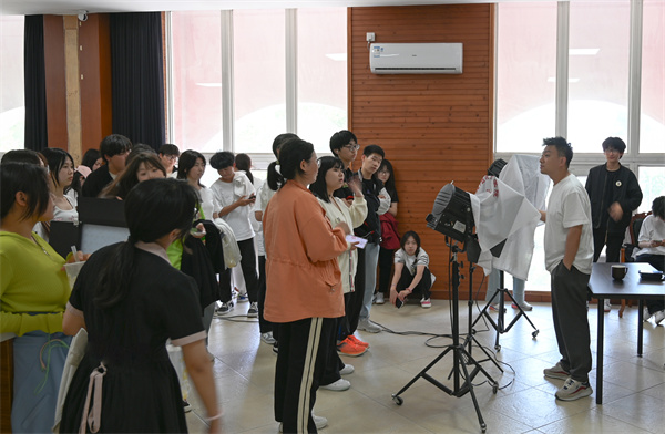 在宏志楼,KOL实训室的真实造景及专业的设备引发学生们的一致惊叹。文化与传播学院传播学专业系主任常啸老师细致耐心的为欧亚学子们介绍每一个布景的功能,每一处设备的用途,常啸老师还通过宣传沈阳城市学院抖音、视频号、特色教师视频号的形式,加大了欧亚学子对沈阳城市学院的关注度,高一1班郝小艺表示:“这些视频号太有趣了,我要分享给我的家人们一起看看。”在绿岛传媒中心,绿岛影业教师郭佳宁带领欧亚学子们观看了由沈阳城市学院独立创作的30集大学校园剧《大三女生》片花。《大三女生》是我校独立创作的30集大型青春励志校园剧,被辽宁省委宣传部认定为“电视剧精品创作生产扶持项目”,入选全国“高校原创文化精品推广行动计划”。剧情中出现的沈阳城市学院的场景正是学生们刚刚参观过的,引发了学生们的积极讨论。