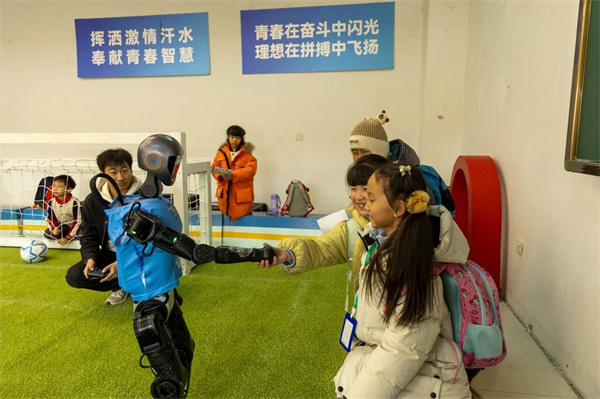 “我居然能和机器人踢比赛!”五年级的解圣哲刚结束与机器人的友谊赛,额头挂着汗珠却难掩兴奋:“它的爆发力惊人,也很聪明,但只能按设定好的程序动,我们人类的战术调整更灵活!”这种“人机对决”不仅激发了孩子们对机械原理的兴趣,更让他们直观感受到人工智能与人类智慧的互补性。