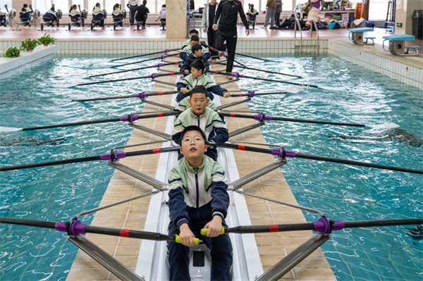 “终于体验了一下什么是‘让我们荡起双桨’啦!”在体能管理中心,孩子们在荡桨池中体验了一下“劈波斩浪”,也感受了到大家齐心合作的向前力量。热身锻炼后,这份团队运动的力量也从室内延续到了室外。