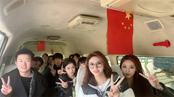 在参观新民电视台过程中,学生坐到真正的新闻主播台,体验了一下当新闻主播的感觉,又去到了新民电视台旗下的融媒电子商务基地参观体验,感受真实电商直播环境与过程。