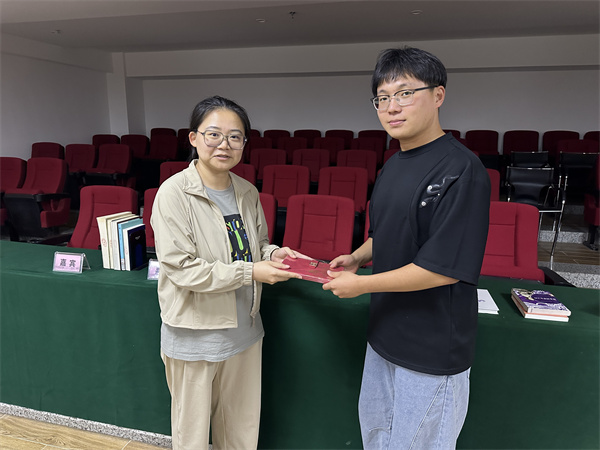 一卷书香伴暑假,一纸感悟映初心。历时近两个月的2025年暑期线上“手拉手借书”活动已圆满结束,沈阳城市学院图书馆依托“长江雨课堂”“超星图书” 两大平台,以50本经典书目为纽带,陪伴同学们在阅读中度过了一段充实而有意义的时光。如今,活动评选结果正式揭晓,4名同学凭借深刻的阅读思考与真挚的文字表达脱颖而出,图书馆于9月10日在水晶宫报告厅举办了颁奖仪式,活动部高老师为获奖同学颁发了奖品。